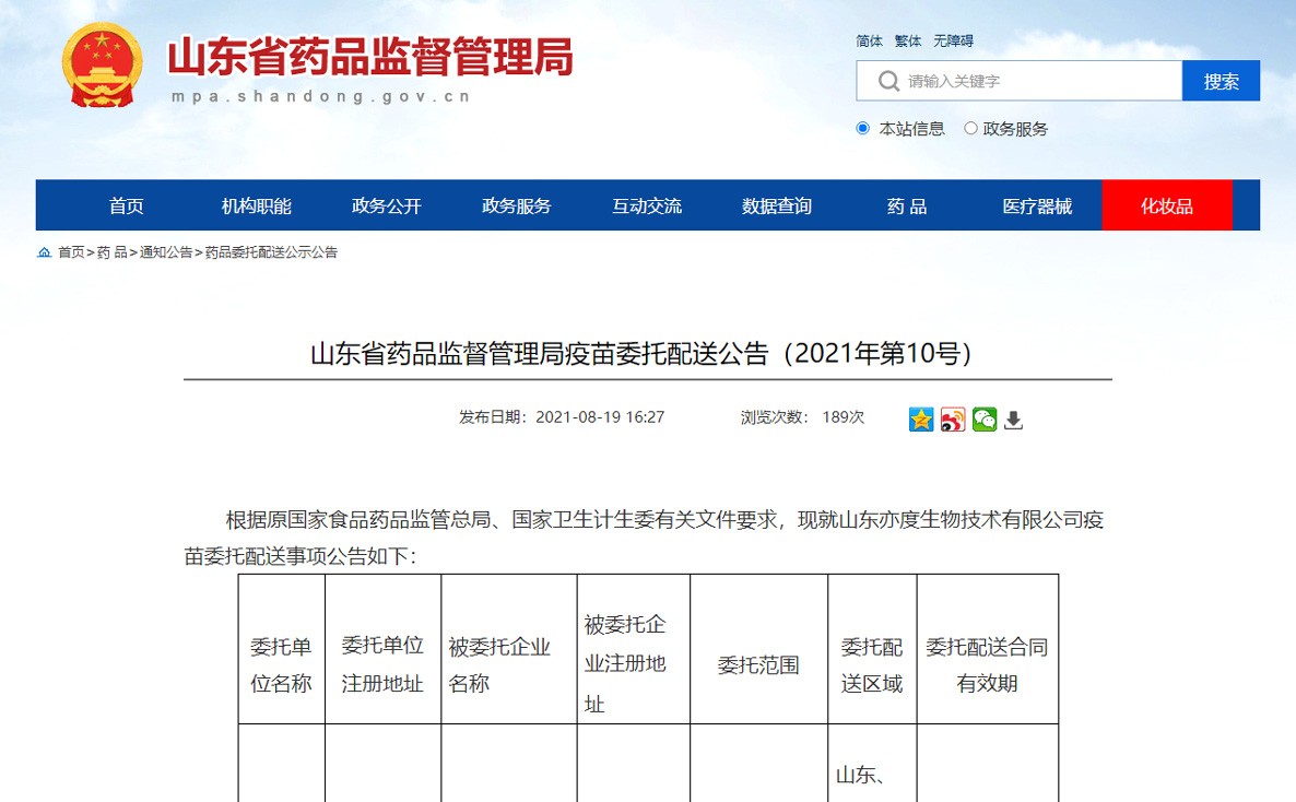 疫苗生產(chǎn)企業(yè)(非免疫規(guī)劃疫苗)委托儲(chǔ)存配送情況報(bào)告信息公示_安徽省藥品監(jiān)督管理局 png山東省藥品監(jiān)督管理局 藥品委托配送公示公告 山