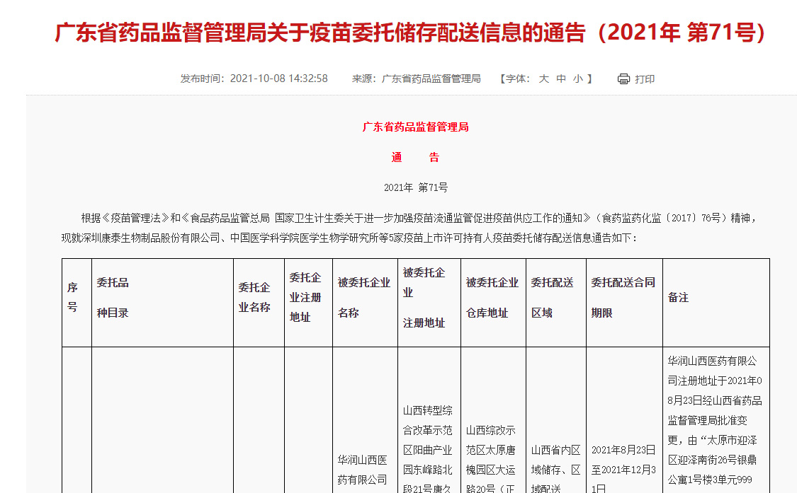 疫苗生產(chǎn)企業(yè)(非免疫規(guī)劃疫苗)委托儲(chǔ)存配送情況報(bào)告信息公示_廣東省藥品監(jiān)督管理局